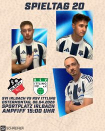 Am Ostermontag empfangen wir den RSV Ittling auf dem Sportplatz Irlbach.